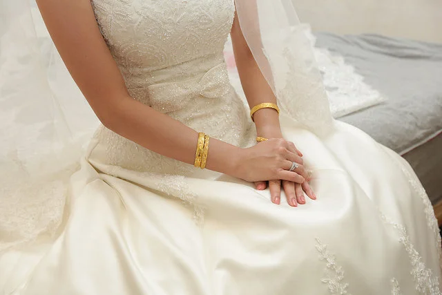 Trying on wedding gowns is a surprising amount of work. The gowns are heavy and difficult to get into. If the weather is warm when you're trying them on, you will quickly become overwhelmed.